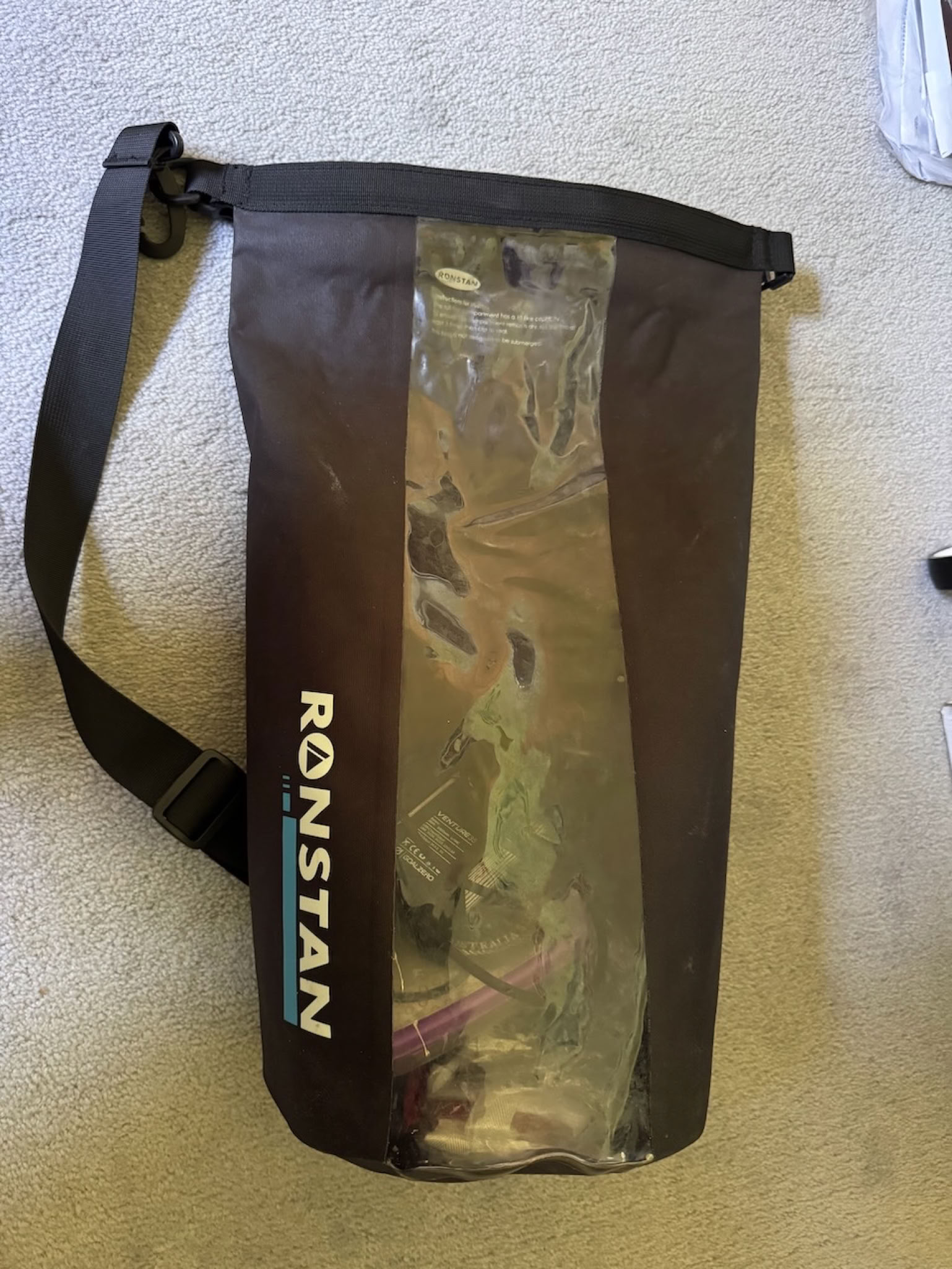 Good quality, used for “office”, which included two notebooks, one reading book, burgee collection, spare battery, pen and pencil case, charts, at times also a water bottle and a GoalZero Crush collapsible light, as well as a box of playing cards. Window is useful, used as “internal” dry bag in the 90L bag – carry strap good for use onshore as well.